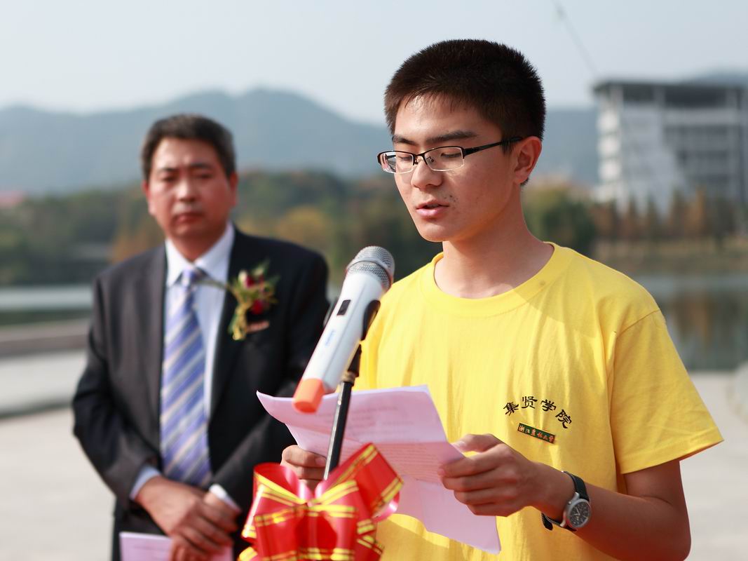 “周星驰电影有这么一句话,‘做人如果没有梦想,跟咸鱼有什么分别?’,为了不成为一条挂在晾衣绳上随风飘摇的咸鱼,我们就需要掘心三尺寻找梦想,撰紧了拳头奋力向上游。”他说,“人最难能可贵的不是智力的优先而是勇气的坚持,坚持每天背单词,坚持每天做阅读,托福、雅思、GRE其实都是坚持风雨后的彩虹。”