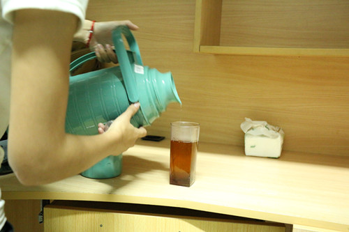 晚上六点,K1体育分团委副书记和员工会主席团成员拎着装满姜汤的热水壶为可爱的学弟学妹们送去了热气腾腾的姜汤。