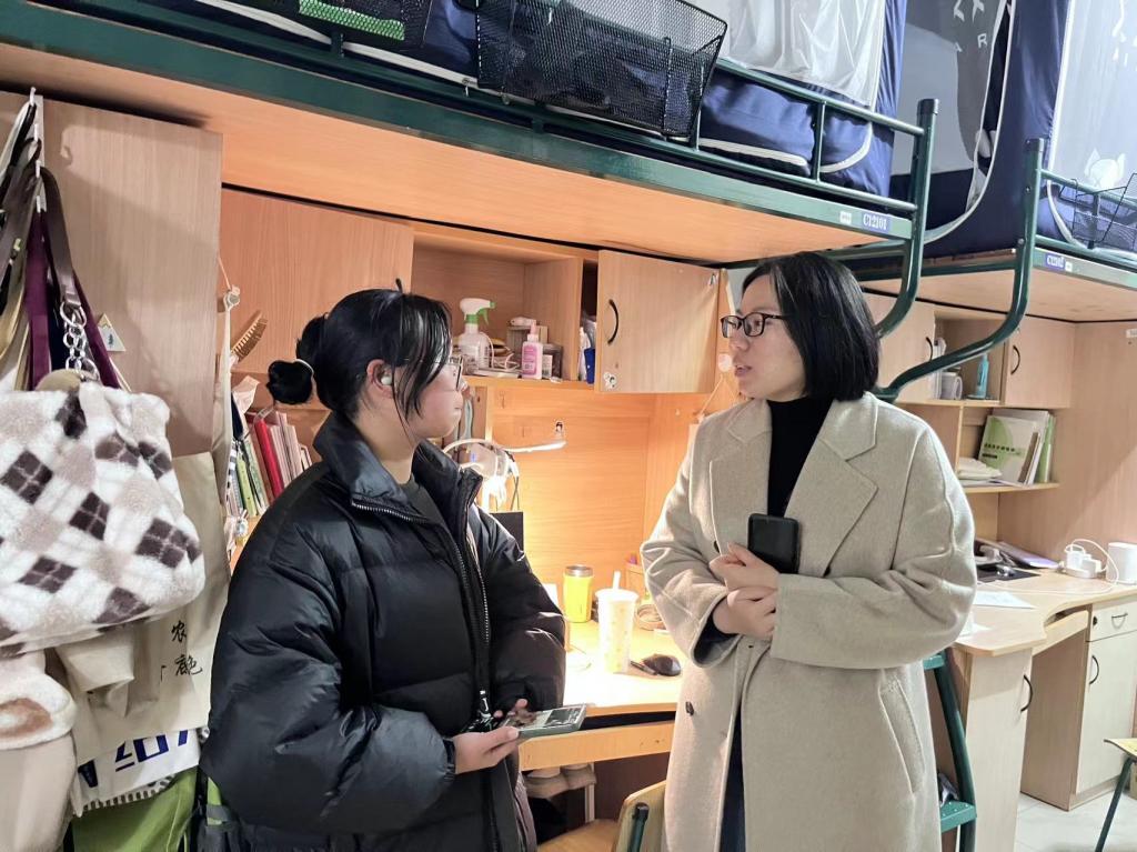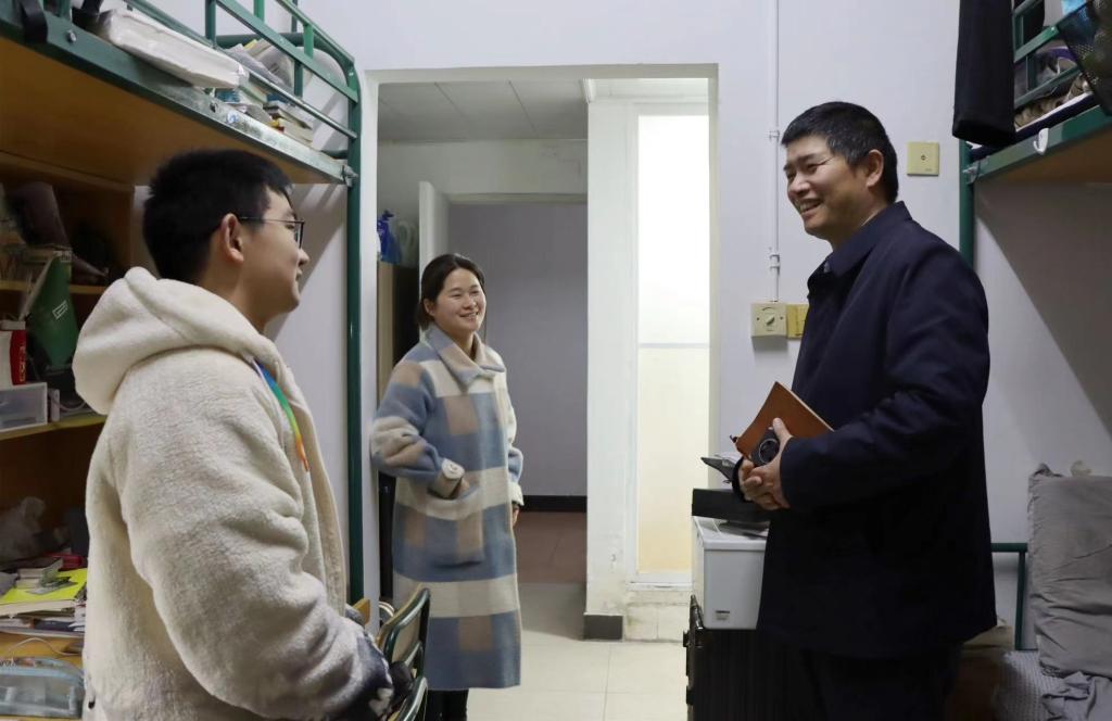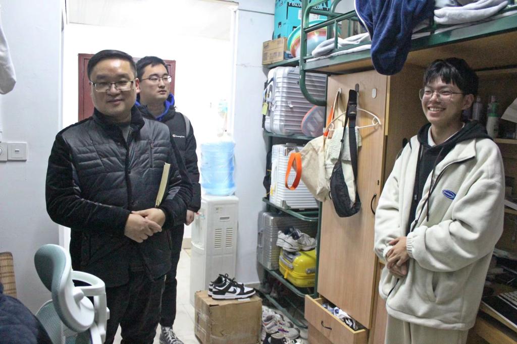 公司领导、辅导员来到员工公寓看望返校员工,了解员工复习备考情况,检查宿舍安全卫生。在寝室,老师与同学们亲切交流互动,聊家常、谈学习、话生活,勉励同学们认真复习备考、取得佳绩,并询问了同学们对公司工作的意见建议。