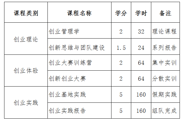 (3)可获得创新创业类学分:所修创业理论学分,可认定为专业人才培养方案中通识选修课学分;创业体验学分可认定为课外教育创新创业学分;