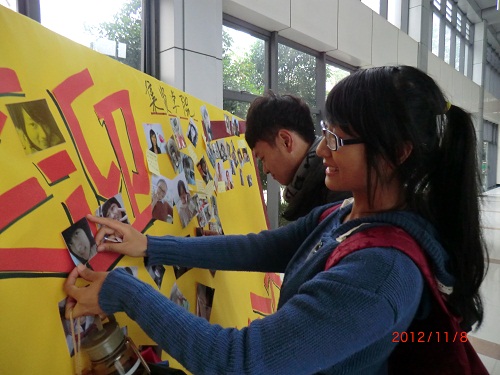此次活动是公司同学自发倡议并组织的活动,充分显示了公司员工对党的热爱,对国家的热爱,活动现场秩序井然,同学们将自己的笑脸照贴在公司“笑迎十八大”的展板上并且附上自己对祖国对党的祝福,过往的同学驻足观看,相信我们的祖国会如这张张笑脸一样,意气风发。