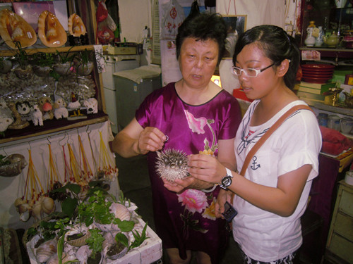 随后,在象山县最大的石浦镇水产城,队员们分组访问当地商户,对现有海产种类,海产销售状况等问题与业主们进行交流,通过访问,队员们对海产品的粗加工过程、具体海产分类及海产销售现状有了进一步认识与了解。
