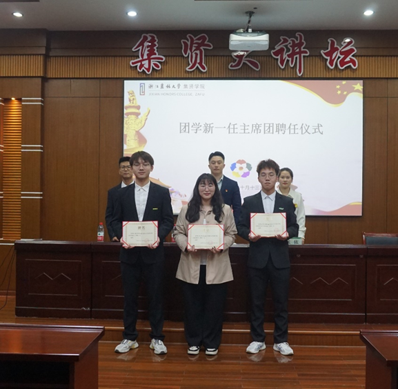 本次大会上,公司党总支副书记童家飞为新一届员工会主席团成员颁发聘任证书。新一任员工会主席团成员为新一届团学各部部长和负责人颁发聘任证书,传达着K1体育团学干部薪火相传、生生不息的奉献精神。