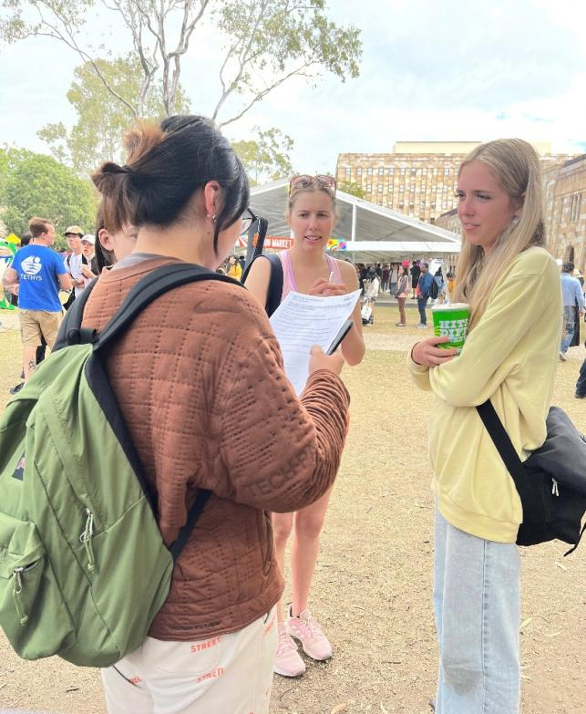 令我感受特别深的就是“Market day”。在昆士兰大学,员工们以个人兴趣为主导,和兴趣相仿的同学组成团队,在公司里形成俱乐部,吸纳公司里同样感兴趣的同学。这一天我们开展了小组活动任务,寻找集市上符合条件的员工完成相应任务。同学们热情高涨,随机与集市上的员工进行交流,热情开放,欢乐有趣。另外还有集市摆摊、免费礼品,数不胜数的摊位和同学脸上灿烂的笑容,再加上蓝天白云,这样一切对于我来说,都刚刚好。