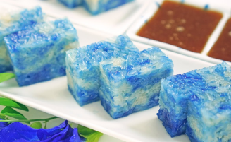 马来西亚当地有许多美食,今天又一支访学队伍到达了USM,在欢迎仪式结束后,我们和一起品尝了公司精心准备的午餐。其中,有一种点心吸引了我的注意。它是一种蓝色的糕点,由糯米制成,吃起来甜甜的。后来英语老师告诉我们,它叫Pulut Tekan,译为兰花加椰糯米糕,是著名的娘惹糕点。马来西亚还有很多景点、美食等待着我们去探索发现,接下来在马来西亚的学习和生活值得期待!
