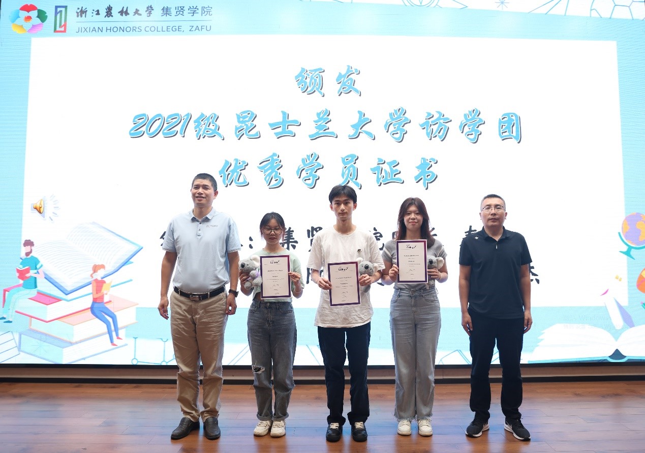 会上,秦华经理、陈立杰副处长为2021级求真实验班世界名校访学团优秀学员颁发证书。
