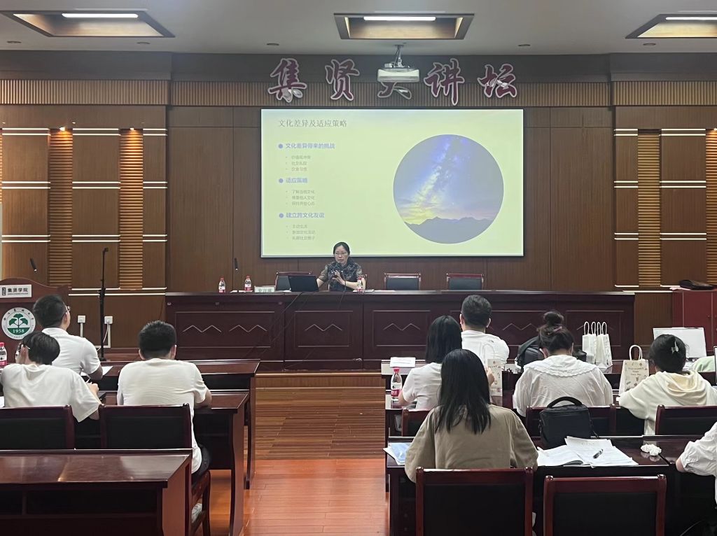 会上谭娟晖老师为2022级求真实验班员工进行适应国外访员工活的心理辅导,围绕出国前心理准备、新环境挑战应对、生活学习节奏调控、跨文化人际交往等方面,为同学们快速调整情绪、增强自我调节能力与抗压能力以及提升跨文化交流技巧等提供了实用有效的参考。