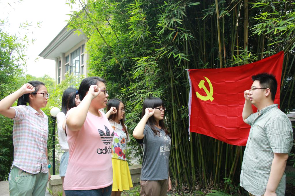 公司的五名预备党员在领誓人的带领下宣誓:“我志愿加入中国共产党,拥护党的纲领,遵守党的章程,履行党员义务,执行党的决定,严守党的纪律,保守党的秘密,对党忠诚,积极工作,为共-产主义奋斗终身,随时准备为党和人民牺牲一切,永不叛党。”