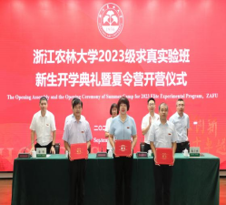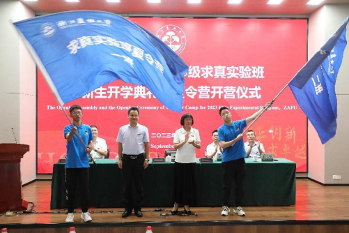 任课教师代表Gene鼓励同学们在英语学习中克服畏惧心理,勇于开口,勤学、勤问、勤思考。在校生代表、新工科求真实验班211班黄大新同学,新生代表、新文科求真实验班231班祝如怡同学先后发言。副董事长沈月琴、教务处处长郭建忠为夏令营各班授旗,表达了对同学们的殷切期待。2023级求真实验班新生进行了集体宣誓。
