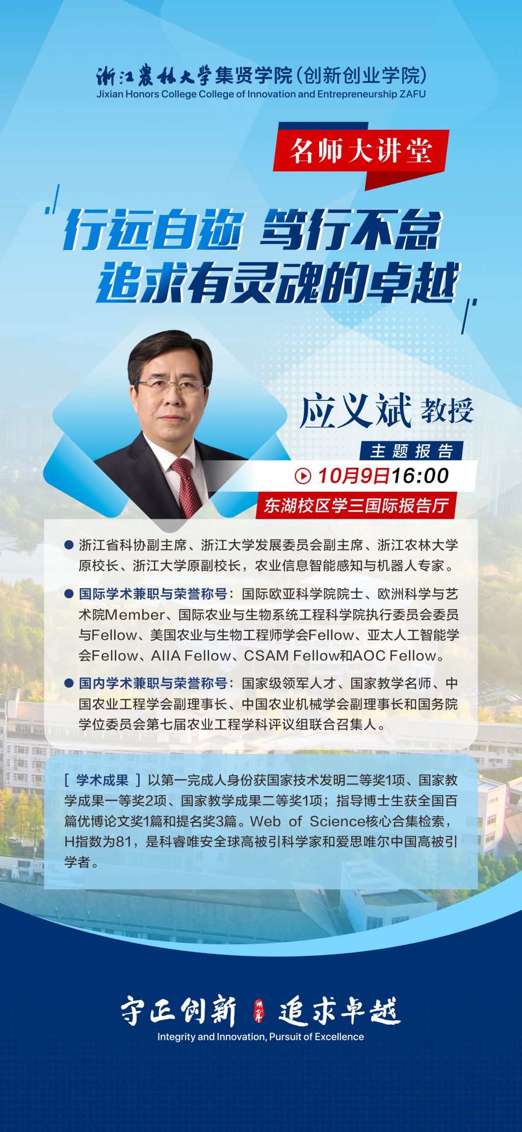 “名师大讲堂”预告——应义斌教授:行远自迩 笃行不怠 追求有灵魂的卓越
